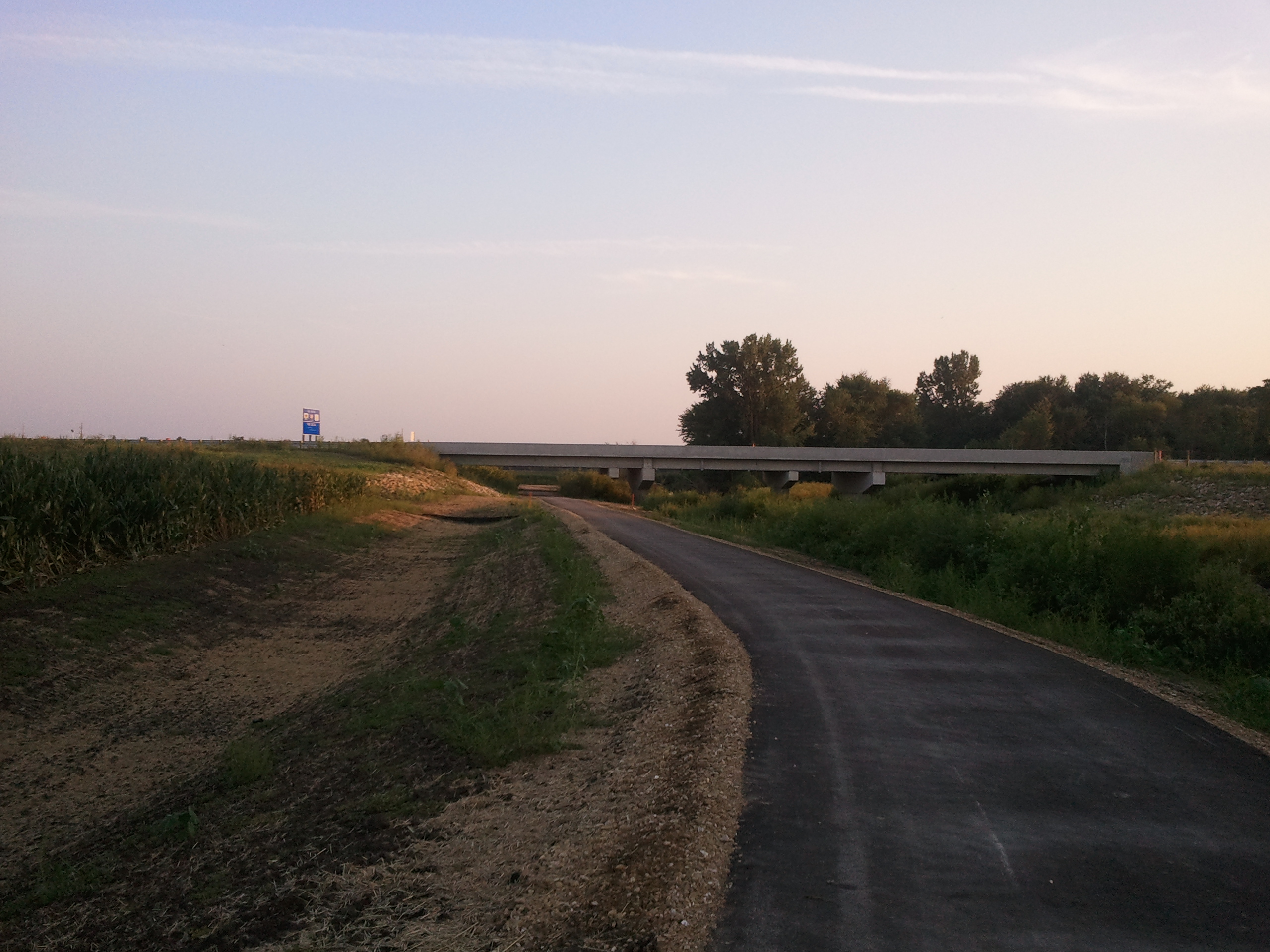 The powers that be have finally finished connecting the trail after they destroyed it while building the Highway 30 bypass around Tama/Toledo.  The really nice thing is I can begin on the trail by Toledo Heights Park and end up at Cherry Lake in Tama.