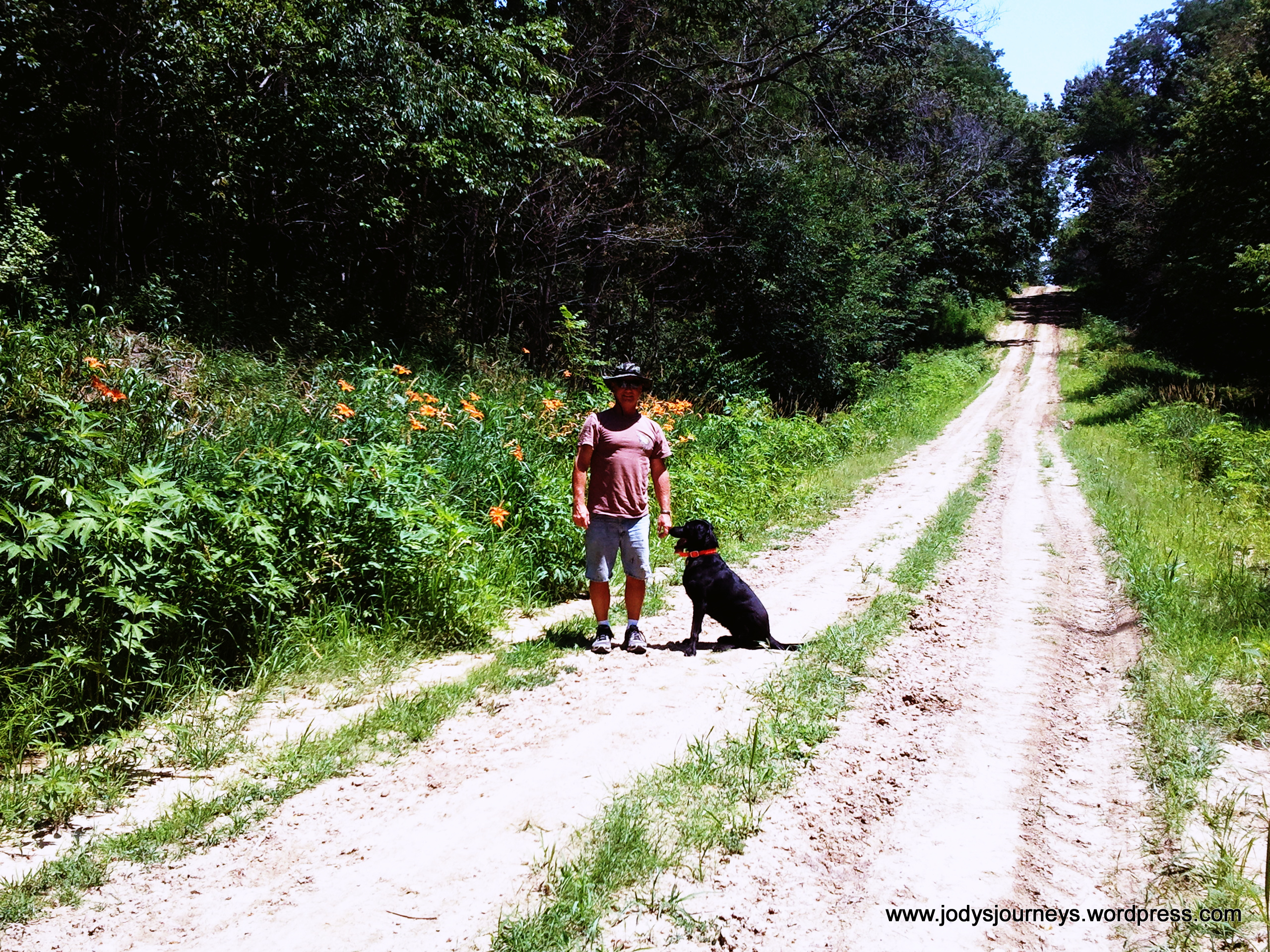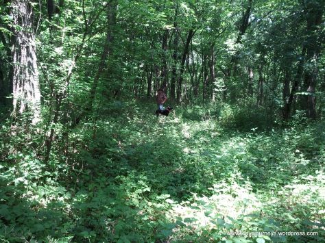 We turned into the woods which was a  great relief from the hot sun.  It was interesting to see that deep in the woods there was still moisture.  The ground was springy and there was mud down in the ravines.
