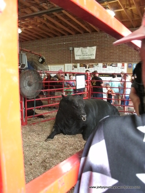 I would not want to run across the below bull in a pasture, however!  This bull was very mean looking, but with all the people it was too hard to get any closer for a better face shot.