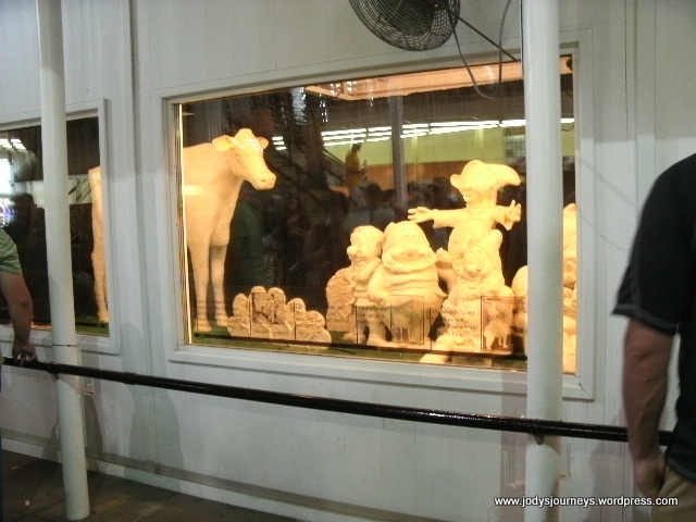 I will end on a happy note with the below picture of the life-sized butter cow and the 7 dwarfs all carved into butter by the butter cow lady who happens to be a local family that just keeps handing down the tradition through the generations.