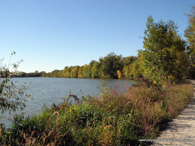 I resisted the urge to play with the cottony seeds and continued on.  The trail also goes around our local lake.
