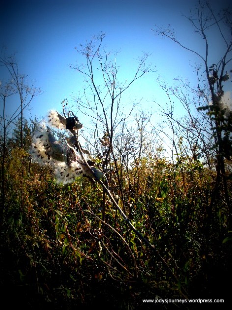 When I saw the milkweed, I was instantly transported back in time to my happy, carefree childhood when I would pick the pods and crack them open, finding the soft downy seeds irresistible.