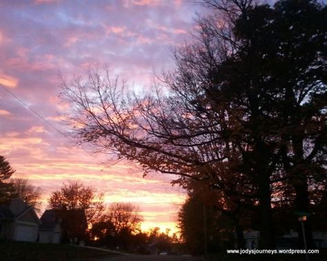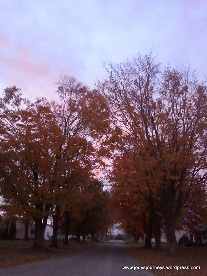 I do love my neighborhood in the fall although a huge windstorm last year blew down some beautiful old trees that I missed this fall. As for the running, I am up to 5 minutes jog, 1 minute walk for about 2 miles. I am going to jump to 7 here soon, but I am not a cold weather jogger so it will be back to treadmill here soon. 32 degrees this morning and frost on the car!
