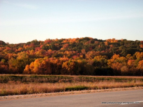 Most of the time I just do not have the time to pull over and take pictures, but I did stop once early on in the season and took the above and below pictures of my view as I drove into work one day. At the time the colors were just starting so I was excited to see the changes.
