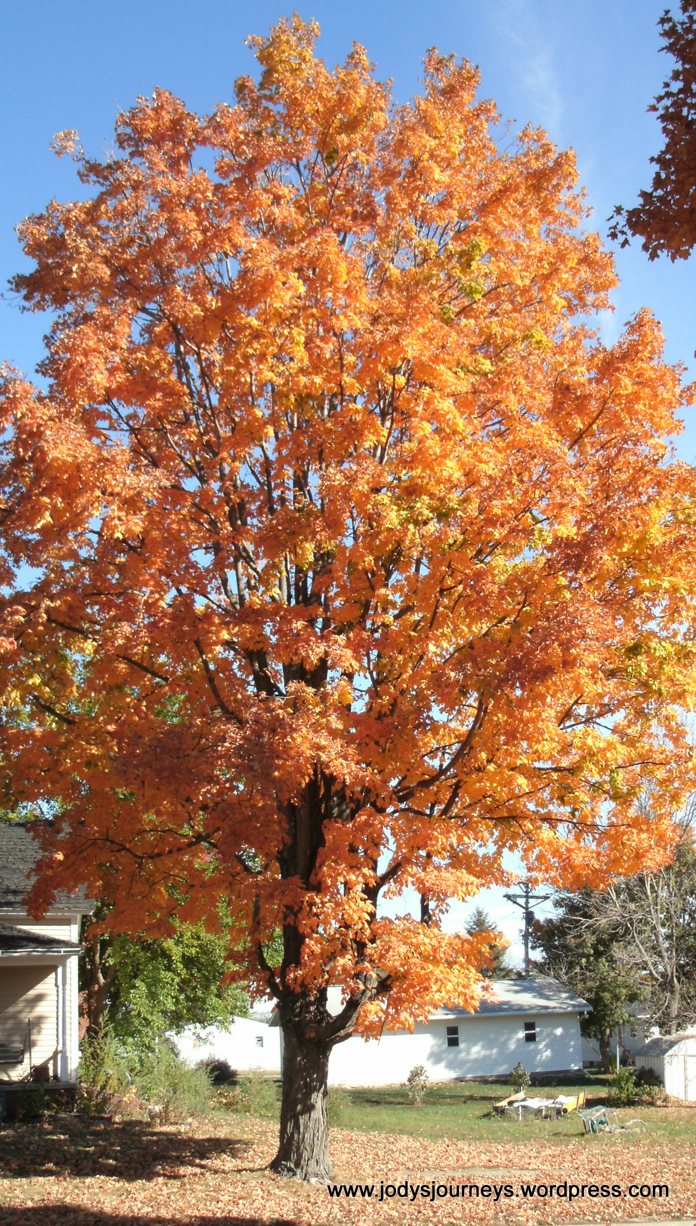 There are very few signs remaining of fall here in Iowa. The temperatures are cool and it is about time to put on a winter coat during the mornings at least. I thought I would share a few of my photos this year even though it was not the prettiest fall I’ve ever seen, mainly because of the drought. I love enjoying the wonderful colors even if they were gone too quickly this year. The picture above is my tree in my yard and the photo below is across the street.
