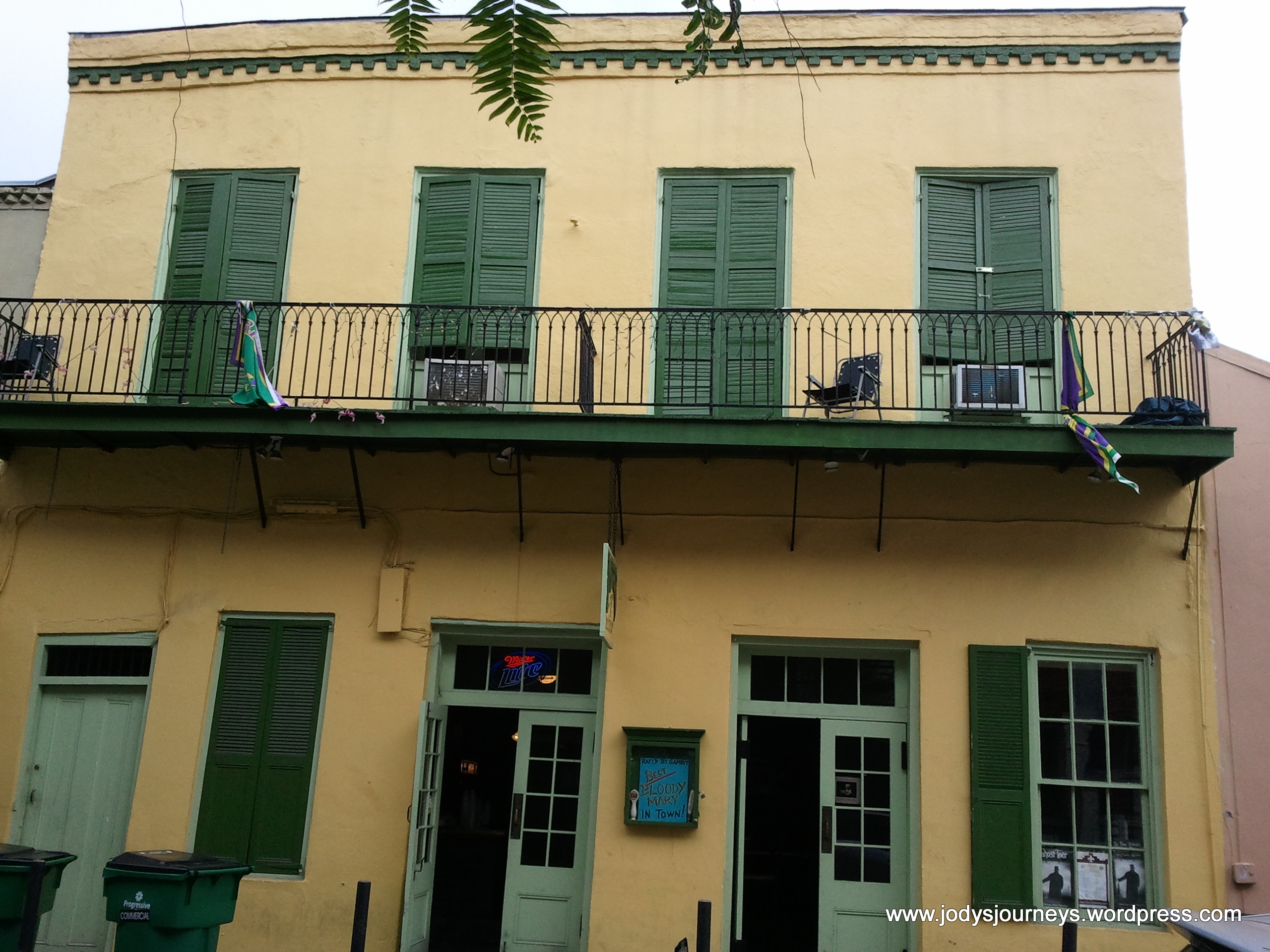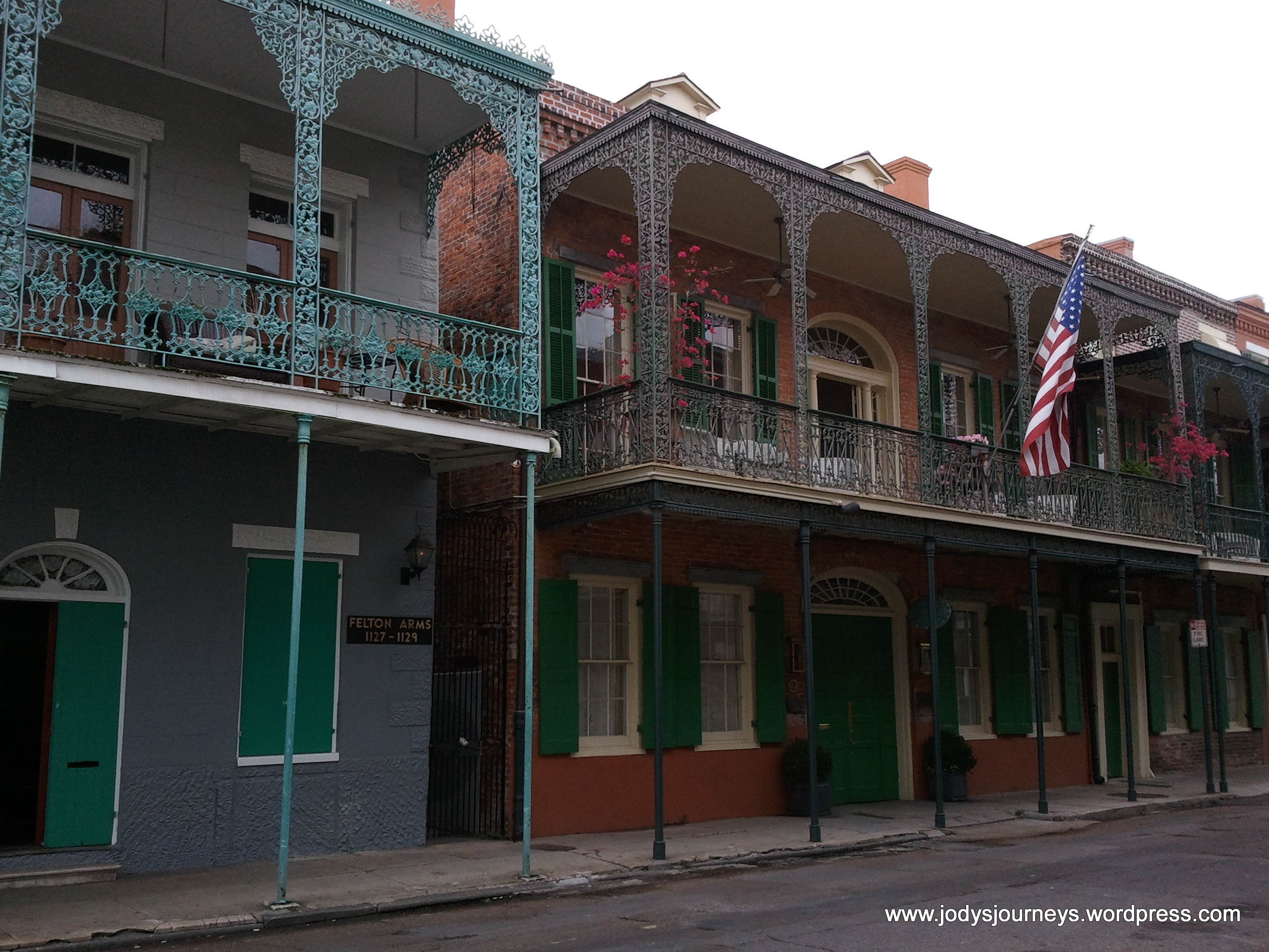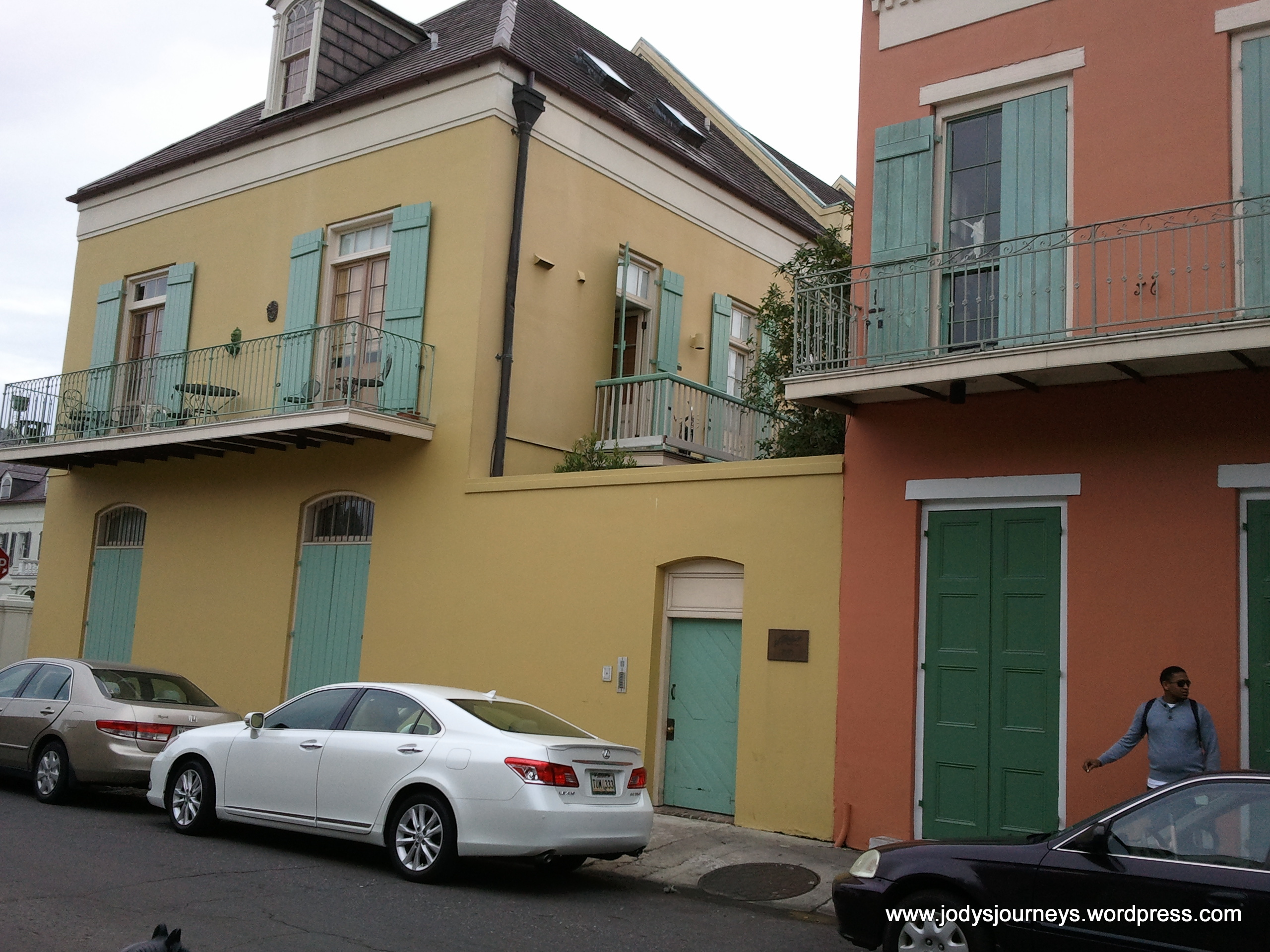 In the below picture it’s a bit hard to see but that small yellow home is the only example of a shotgun house that I could find as I wandered. The tour guide said they got the term shotgun houses because in the old days they had to pay taxes on only the frontage space a house took up, so they learned to make their houses small in width but extend way back. If for some reason the homeowner wanted to, they could stand outside the front door and shoot a shotgun at something in the backyard and never hit the house as it was a straight shot front to back. Voila, the term shotgun house was coined. The below picture gives you an idea of how far back the house goes.