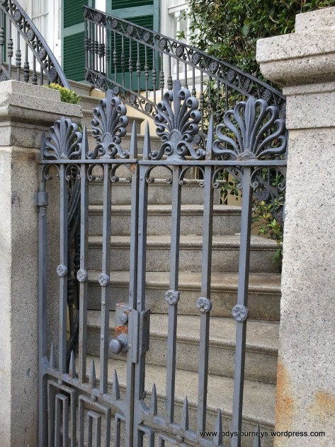 On the tour we also learned that for a lot of the houses we are seeing the back or sides of the house. Many of them are in fact facing inward into courtyards. There were a few examples of houses that had small iron fences that we could see through into the beginning of beautiful courtyards with ferns and fountains, but I could not find any to photograph on my journey.