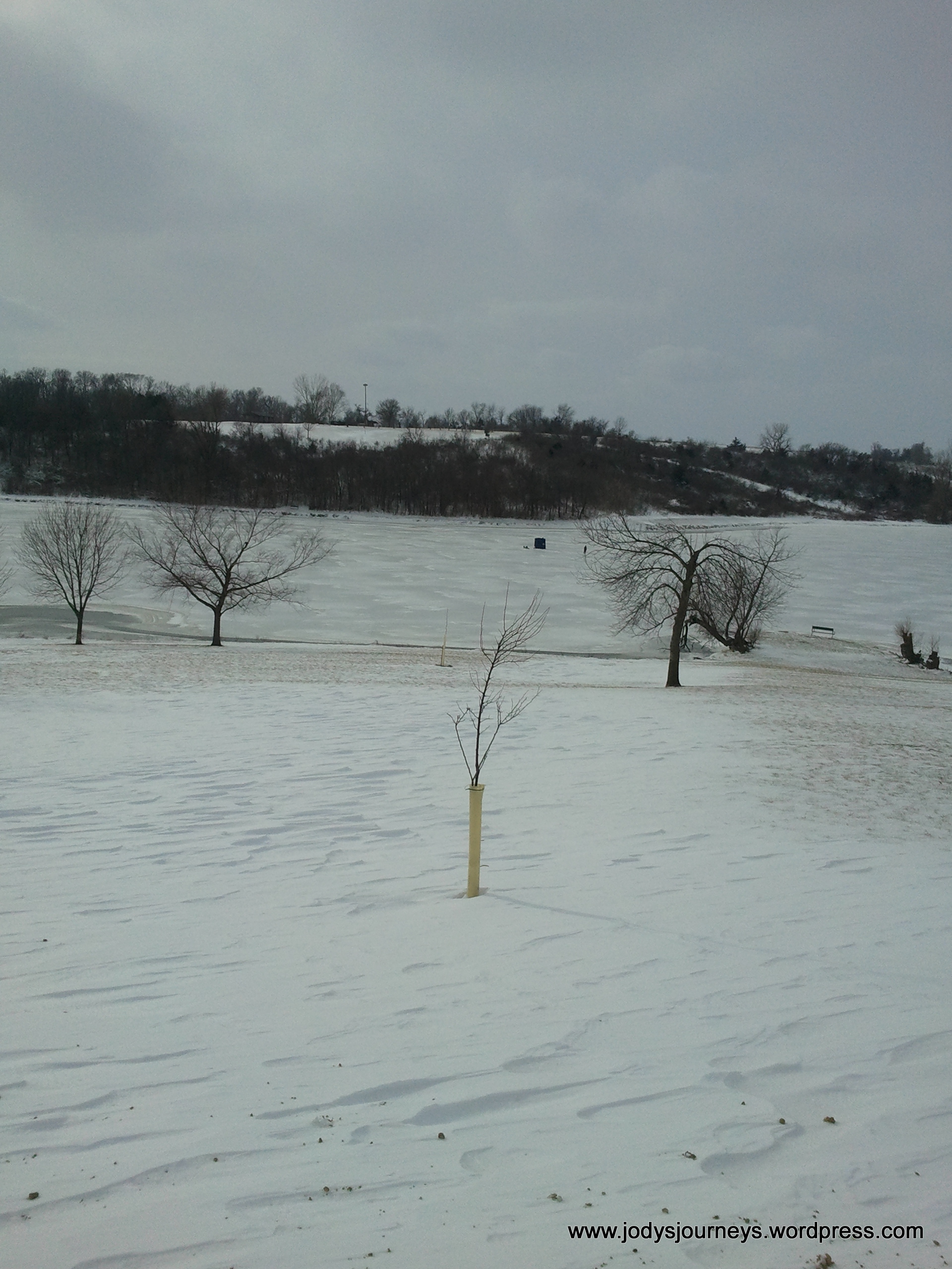 The sun kept coming out and going under the clouds, and as I was catching my breath after climbing back up the hill, I noticed the above scene and got a picture of it.  There is something to say about sledding alone because I was able to really focus on the scenery and keep myself in the now, truly feeling the sharp cold air every time I gasped for air trudging up the hill, the exhilaration as I flew down the hill, the peace as I sat on my sled and enjoyed the view!