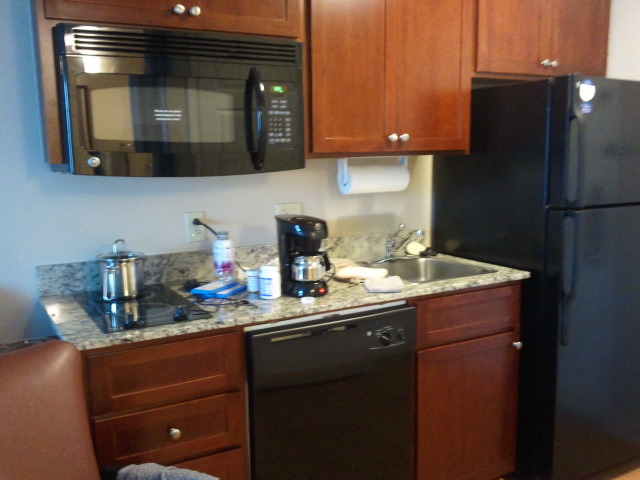 We arrived at Candlewood Suites at 9 pm local time.  Although everything is crammed together, it’s a real nice room with a cute kitchen.  Too bad we are only staying the one night!