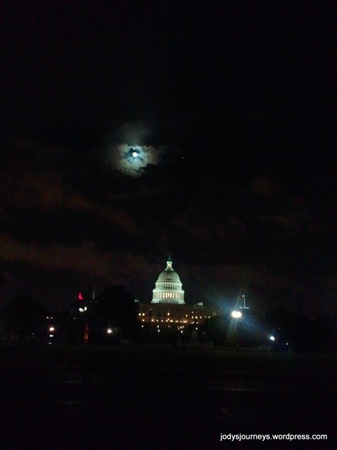 I don’t even have a picture of my favorite monument which was the Korean War Memorial.  Wow, if you get a chance to see it at night, GO!  That was so spooky and cool I found myself looking around for enemies.  It’s a whole platoon of realistic statues walking along on patrol, and at night their faces are lit and become very ghostlike.