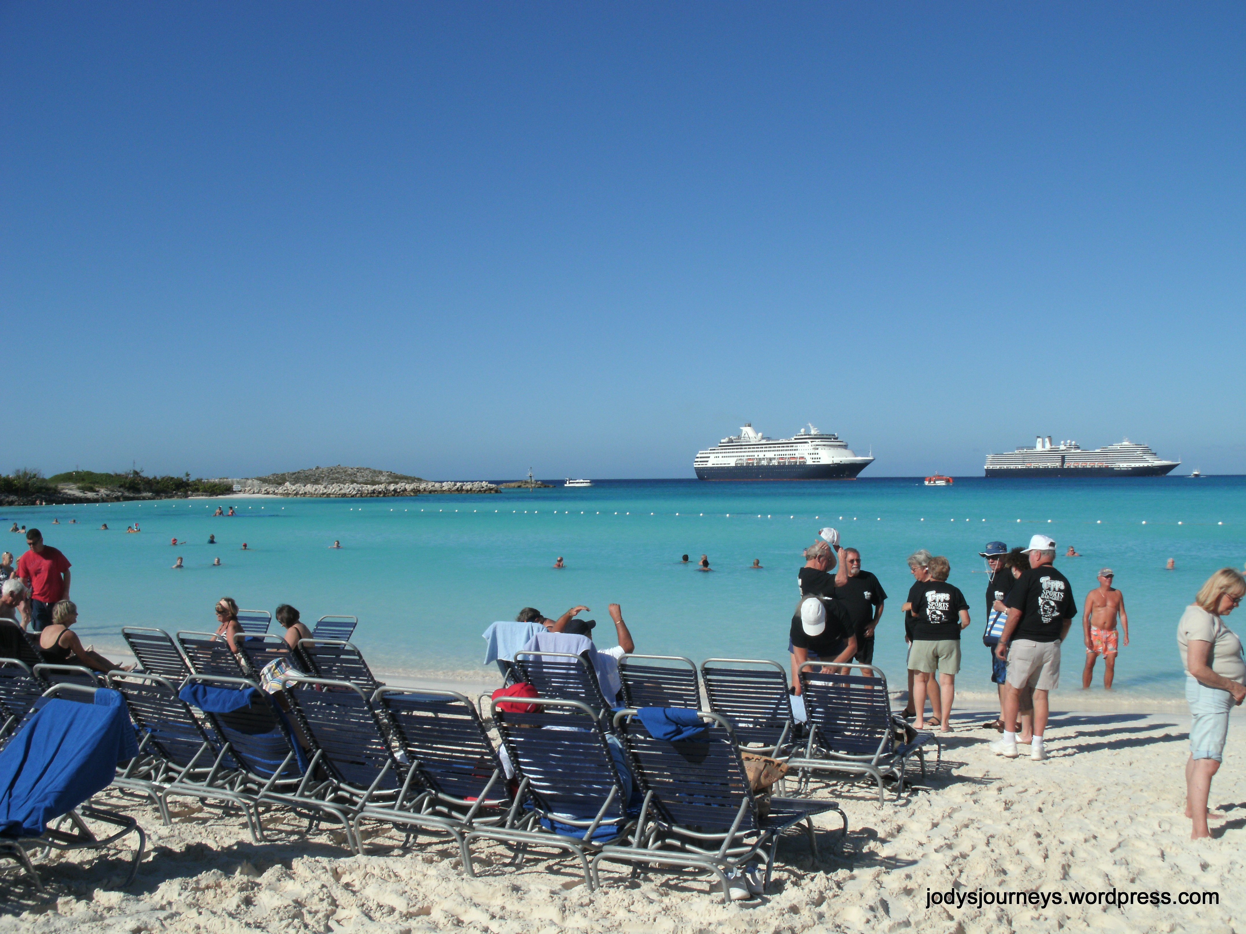 As you can see from the above photo, we shared the island with another ship until about 1 pm when they departed and we got to stay!  Since we had already been on a kayak excursion, I would have been happy to skip that portion of this excursion and just ride the bikes.  I didn’t learn anything new, and there was absolutely no instruction on how to kayak compared to the other excursion I was on.  It was windy and tough kayaking with no discussion at all while on the water.  However, I really enjoyed the bike ride.  It felt so good to get on a bike again (even if they were old bikes) and pedal around!  Our guide, however, did not have much to say when we made about 3 different stops.  I did get to see a big ray come out of the water over by where they had them fenced in for the brave snorkelers to pet.