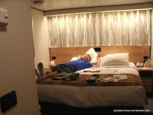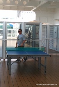 We also visited the disco each night for a few dances when I could manage to stay up for it.  I was disappointed in the DJ because he would just load up a song and leave the booth!  There were no requests and like 10 people at the MOST whenever we were there.  You’d think he would be encouraging us to request music so we’d dance.  We also went to the stage shows each night filled with singing and dancing which were great!!  I would have liked more evening options, though, like a comedian show.  One night they had a magician which I am not real into so we did not go to that.  I found out later that this was the one ship that did not have a tennis court so I think I would be a lot happier choosing one with a tennis court so I could have played every day.  However, with the high winds every day, I may not have been able to anyway.  Our cruising buddies said this was the roughest cruise they had been on.  Thank goodness I did not get seasick though.  I have gotten sick before going across the English channel in a ferry so we were worried I might get sick, but it’s a different kind of rocking in these ships so if you have been sick before on a smaller boat, you still might be okay on these ships.