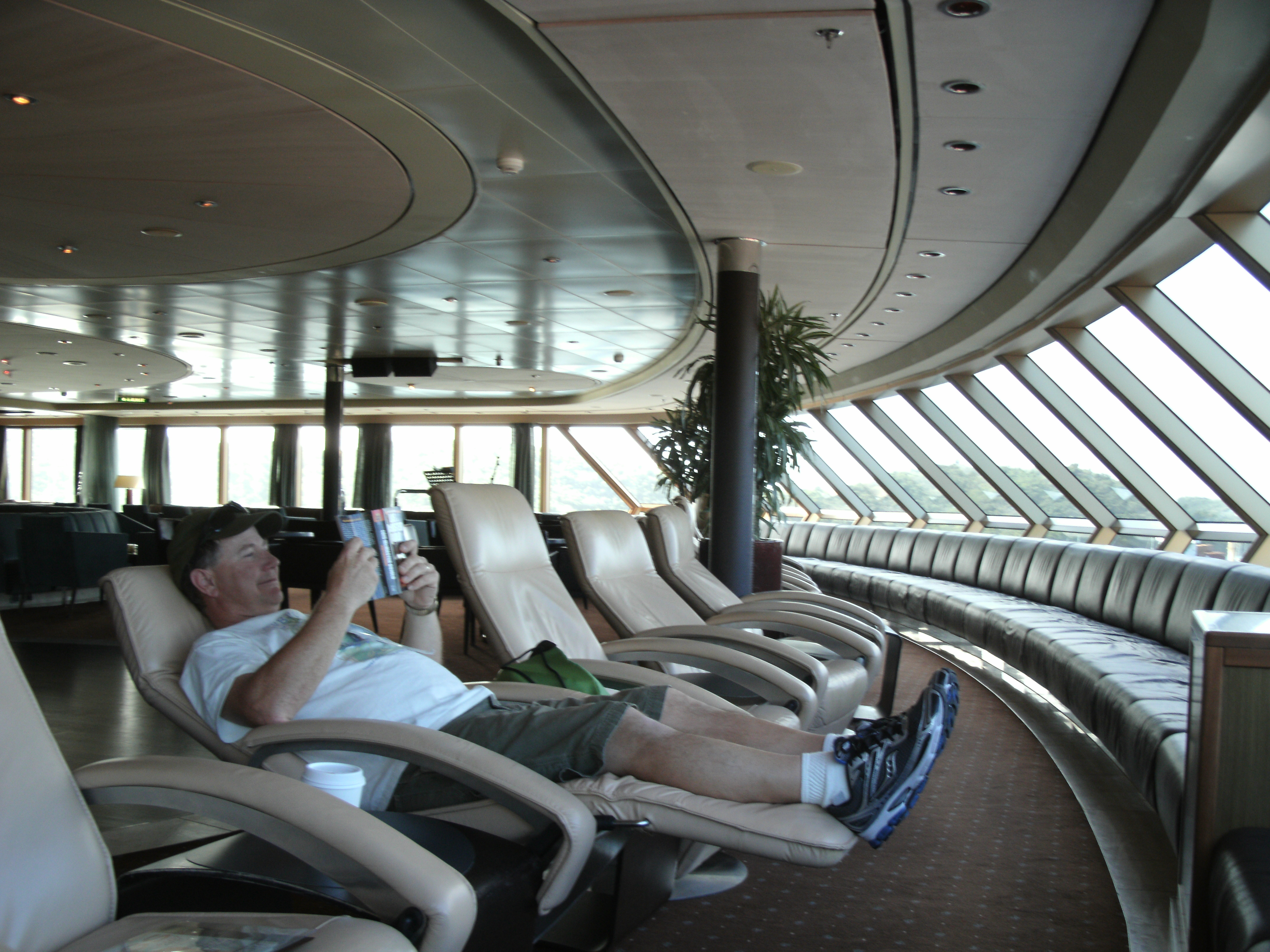 This cruise was perfect if you wanted to relax, though, and lay in the sun by the pool, swim, or quietly read.  Otherwise, I think you should try a different ship.  My — and also hubby’s — favorite place (as you can see in the picture) on the entire ship was Explorations, a mix of a coffee bar, Internet cafe, and library.  Hubby loved the lounge chairs but he had to time it just right to grab one because they were so popular.  The only reason no one was around in the picture is because we were docked, and everyone was still out enjoying St. Thomas.