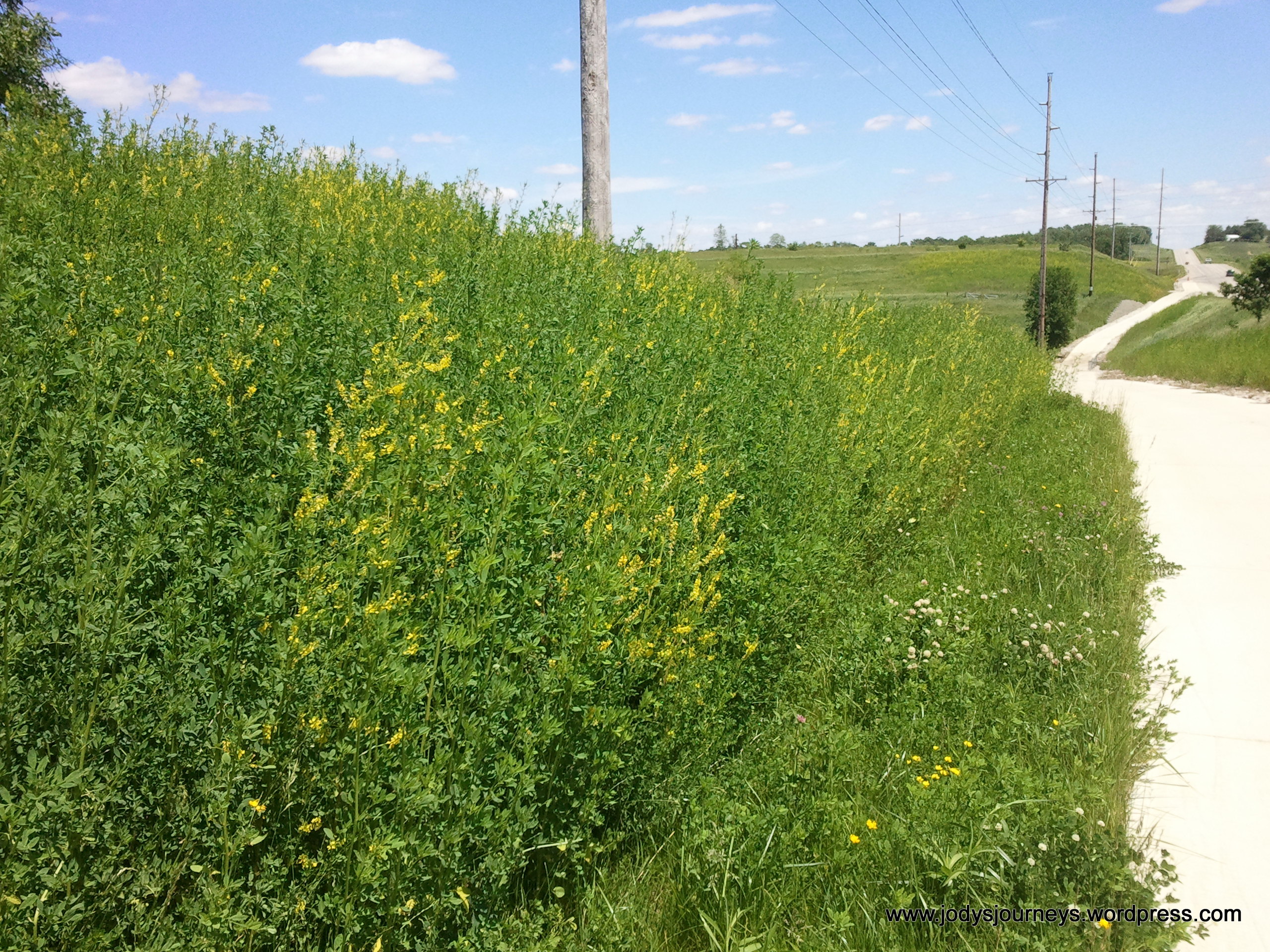 Continuing past Grimes Farm onto the new section which goes along Highway 30 and then up 330 to Melbourne, I wanted to be sure that I biked 5 miles out before I headed back.  As you can see in the picture below, there is absolutely no shade on this section and it is very hilly so I did not last long as the sun was unrelenting!