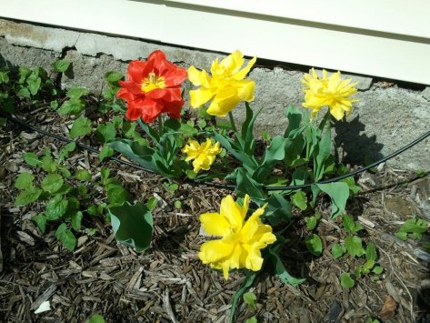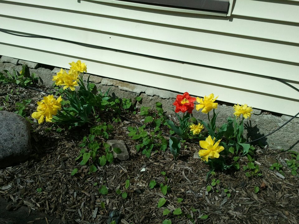 Spring time in Iowa is a beautiful time of year after the first rains get over with. Everything turns green and the tulips burst forth. These are double tulips, and I came close to missing out on getting these pictures because Spring happened so early this year. As you can see, these are almost done flowering.