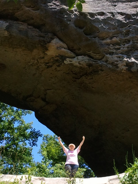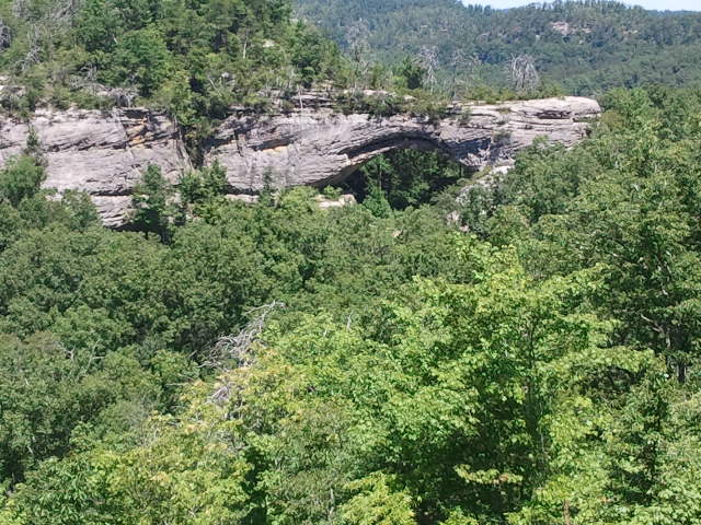 Arch Rock is a natural arch located a short distance away in the Daniel Boone National Forest that pretty much surrounds the park. We drove to the trail head and so the picture above is from there. Then we proceeded to go up and down more stairs (remember my calves were killing me each time I went downstairs after the lighthouse) to get up close and personal with arch rock. It was a pretty trail although it was getting very hot by this time. We did eventually make it to the destination.