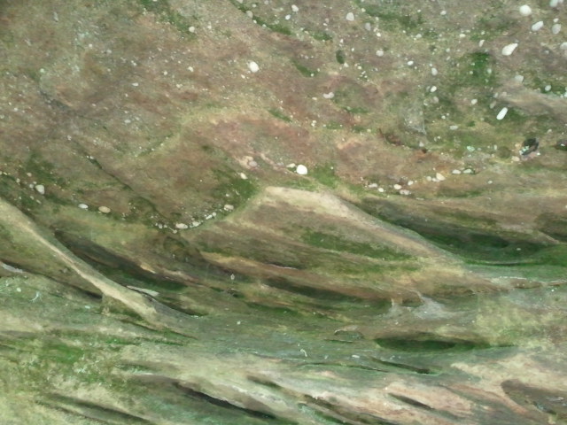 On the way out I snapped a closeup picture of the rock because it was very interesting to see a line of pebbles almost in a straight line like someone was arranging them in the stone. This was a common thing to see as we walked.
