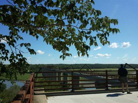 The High Trestle Bridge is a 1/2 mile bridge, 13 stories high, perching you on top of the Des Moines River Valley.  It was very windy the day we went, so just a word of warning if you go when it’s cool, that you might want to bring a wind breaker along.  The bridge was an old trestle train bridge, and I love how an artist designed the bridge with the trestles wrapped around it to form an open-air tunnel!!