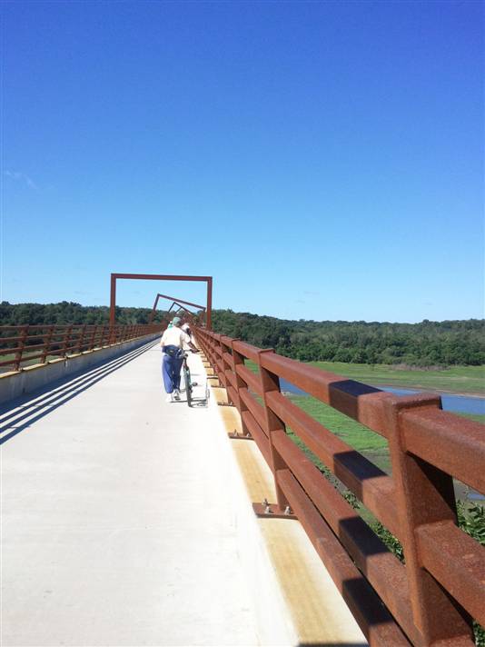 Since the famous bridge that everyone wants to see is between Woodward and Madrid, we decided to start at Madrid.  If you want to be like us and start at Madrid, you follow the Highway 210 signs and the bike path and parking is right off that.  It is about 2.8 miles to the bridge from there, or for a shorter walk, you could look for the gravel road west of Madrid called QN or QM that has parking and porta-pots and is only a mile to the bridge.
